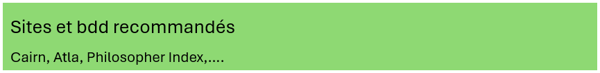 - en philosophie : Encyclopédie philosophique universelle [SL 7057], Vocabulaire technique et critique de la philosophie de Lalande [SL 7070], Encyclopedia Universalis philosophie [SL 7058].